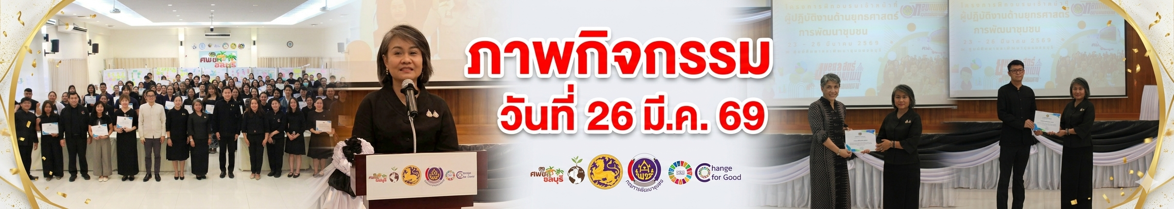 วันที่ 26 มีนาคม 2569 (วันที่ 4) กรมการพัฒนาชุมชนปิดฉากการอบรมนักยุทธศาสตร์ชุมชน ในวันที่ 4 ติวเข้ม "กระบวนการจัดทำแผน" พร้อมรับมอบประกาศนียบัตร มุ่งขับเคลื่อนแผนพัฒนาชุมชนเชิงพื้นที่ฯ แลแผนปฏิบัติราชการอย่างเต็มรูปแบบ กรมการพัฒนาชุมชน โดยกองแผนงาน ประสบความสำเร็จในการดำเนินโครงการฝึกอบรมเจ้าหน้าที่ผู้ปฏิบัติงานด้านยุทธศาสตร์การพัฒนาชุมชนอย่างต่อเนื่องเป็นวันที่ 4 ซึ่งเป็นวันสุดท้ายของโครงการ เมื่อวันที่ 26 มีนาคม 2569 ณ ศูนย์ศึกษาและพัฒนาชุมชนชลบุรี จังหวัดชลบุรี โดยมีเจ้าหน้าที่จากสำนักงานพัฒนาชุมชนจังหวัด ศูนย์ศึกษาและพัฒนาชุมชน และส่วนกลาง เข้าร่วมรับการพัฒนาศักยภาพสำหรับการดำเนินงานในช่วงเช้าเป็นกิจกรรมการฝึกปฏิบัติการจัดทำห่วงโซ่คุณค่า (Value Chain) ของแผนปฏิบัติราชการสำนักงานพัฒนาชุมชนจังหวัด ซึ่งเป็นการนำองค์ความรู้จากการทำ SWOT และ TOWS ที่ได้เรียนรู้ในวันก่อนหน้ามาประยุกต์สู่การออกแบบกระบวนงานที่เชื่อมโยงกันอย่างเป็นระบบ เพื่อให้แผนปฏิบัติราชการมีคุณภาพและสามารถนำไปใช้ขับเคลื่อนงานในพื้นที่ได้อย่างแท้จริง ช่วงบ่ายเข้าสู่กระบวนการนำเสนอผลผลิตจากการฝึกปฏิบัติ ซึ่งถือเป็นหัวใจสำคัญของการอบรม โดยได้รับเกียรติจาก นางสาวมณฑิรา เข็มทอง ผู้ตรวจราชการกรม และ นายนพรัตน์ ธำรงทรัพย์ ผู้อำนวยการกองแผนงาน ร่วมเป็นผู้ให้คำแนะนำและติวเข้มในรูปแบบ Mentoring อย่างใกล้ชิด เพื่อเติมเต็มมุมมองด้านยุทธศาสตร์และการจัดทำแผนให้มีความสมบูรณ์ สอดคล้องกับทิศทางการพัฒนาประเทศและการบริหารงานเชิงพื้นที่แบบบูรณาการตามนโยบายของอธิบดีกรมการพัฒนาชุมชน ในช่วงสุดท้ายได้มีพิธีปิดและมอบประกาศนียบัตรให้แก่ผู้เข้ารับการอบรม โดยมี นางสาวมณฑิรา เข็มทอง ผู้ตรวจราชการกรมเป็นประธานในพิธีมอบประกาศนียบัตรและกล่าวปิดการอบรม เพื่อเป็นเกียรติและสร้างขวัญกำลังใจให้กับ "นักยุทธศาสตร์" ในการกลับไปปฏิบัติหน้าที่เป็นกลไกหลักในการขับเคลื่อนงานยุทธศาสตร์และขยายผลสู่ระดับอำเภอได้อย่างเป็นรูปธรรมต่อไป การดำเนินงานตลอดทั้ง 4 วัน สะท้อนถึงบทบาทที่เข้มแข็งของกองแผนงาน ในฐานะหน่วยงานหลักที่มุ่งมั่นพัฒนา "คนทำงานยุทธศาสตร์" ให้สามารถ "คิดเป็น วางแผนได้ และขับเคลื่อนจริง" เพื่อสร้างการพัฒนาชุมชนที่ยั่งยืนในทุกมิติ
